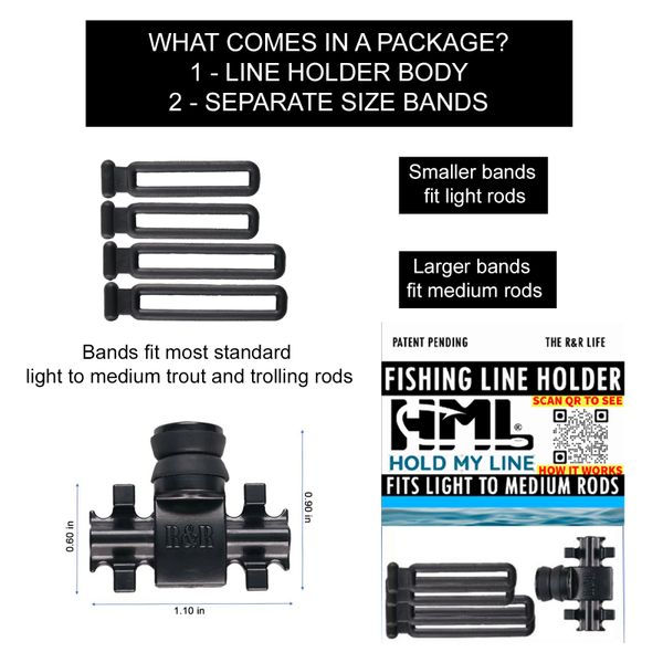 Place next to handle, opposite of the eyelets and let Hold my Line take the stress out of holding tension on your line when you don't have a hook on. Works perfect while changing bait or breaking down for stow away. Fits all standard fishing rods.